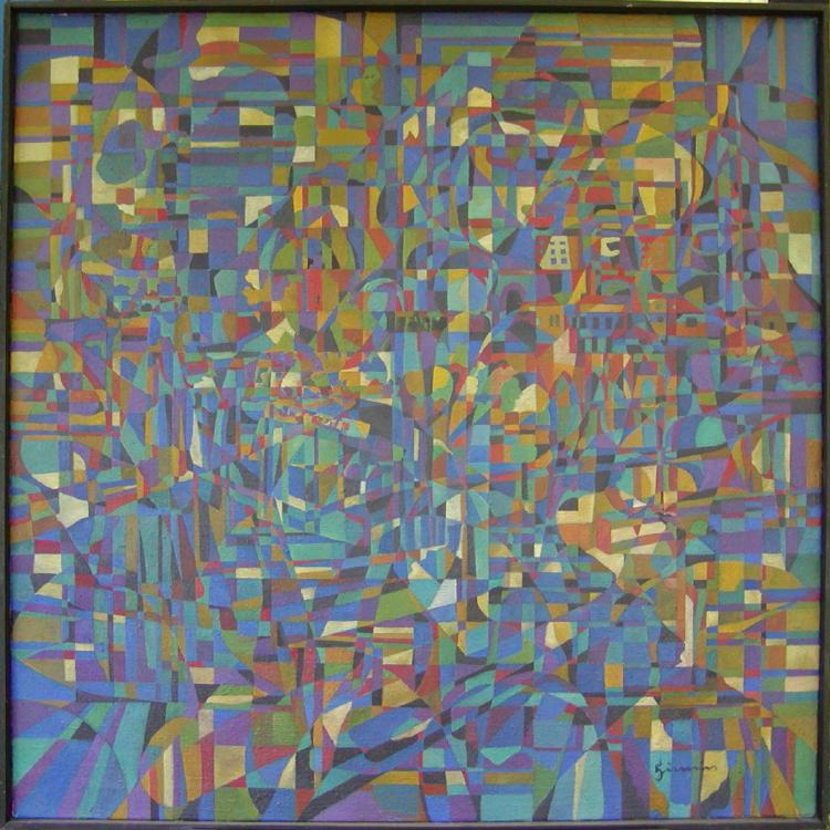 malpa's stadt; 1993; 100x100 oel auf leinwand